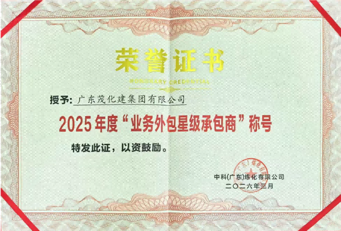 喜報|榮獲中科煉化2025年度“ 業(yè)務(wù)外包星級承包...