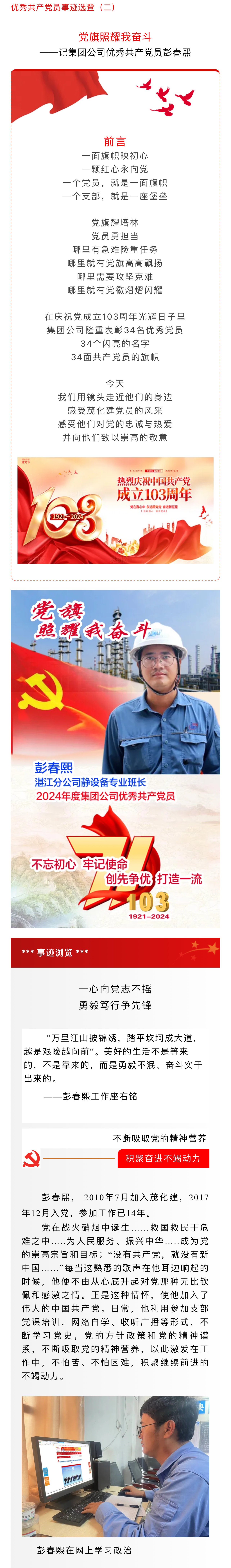 黨旗照耀我奮斗——記集團(tuán)公司優(yōu)秀共產(chǎn)黨員彭春熙