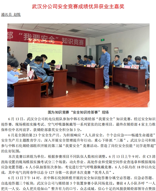 武漢分公司安全競(jìng)賽成績(jī)優(yōu)異獲業(yè)主嘉獎(jiǎng)