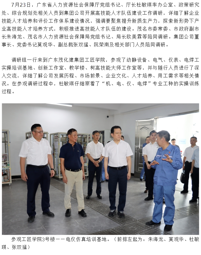 廣東省人社廳到集團(tuán)公司調(diào)研高技能人才隊(duì)伍建設(shè)工作