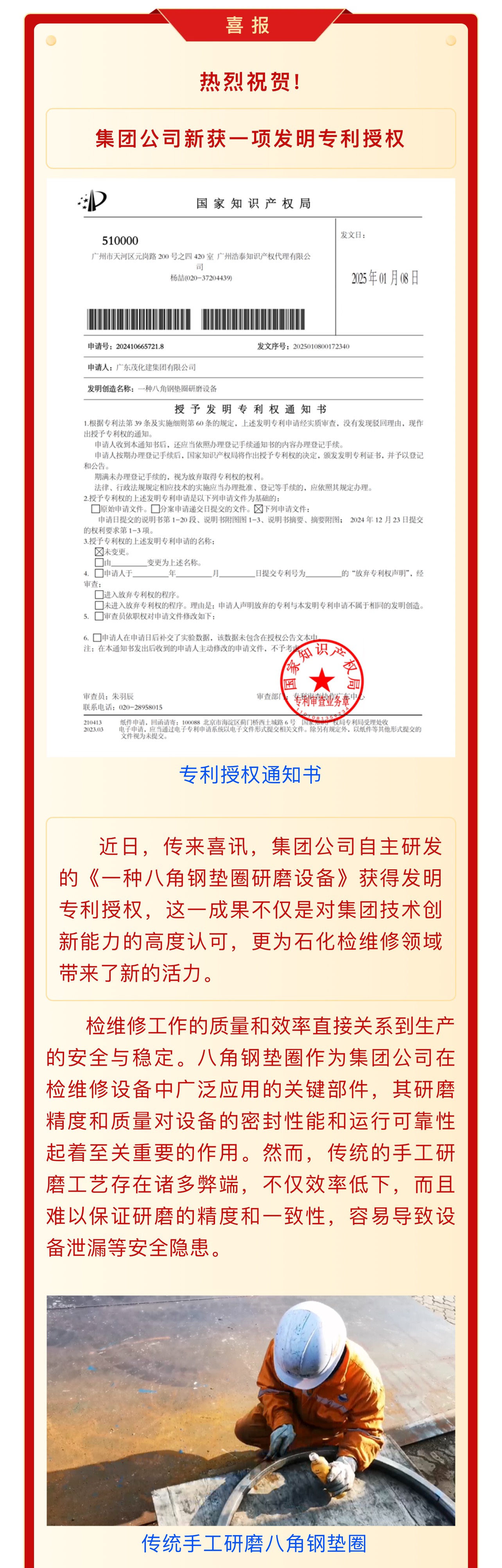 喜報(bào):集團(tuán)公司新獲一項(xiàng)發(fā)明專利授權(quán)