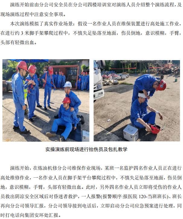 煉油機(jī)修配合集團(tuán)安環(huán)處開(kāi)展高處作業(yè)墜落事故應(yīng)急演練
