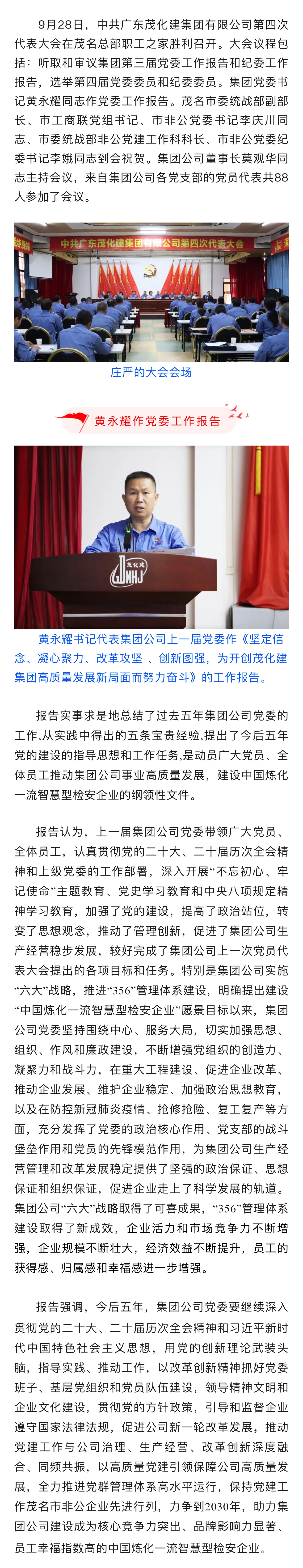 中共廣東茂化建集團(tuán)有限公司第四次代表大會(huì)勝利召開(kāi)
