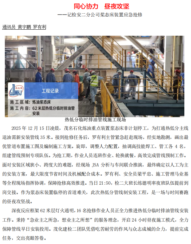 記檢安二分公司槳態(tài)床裝置應(yīng)急搶修