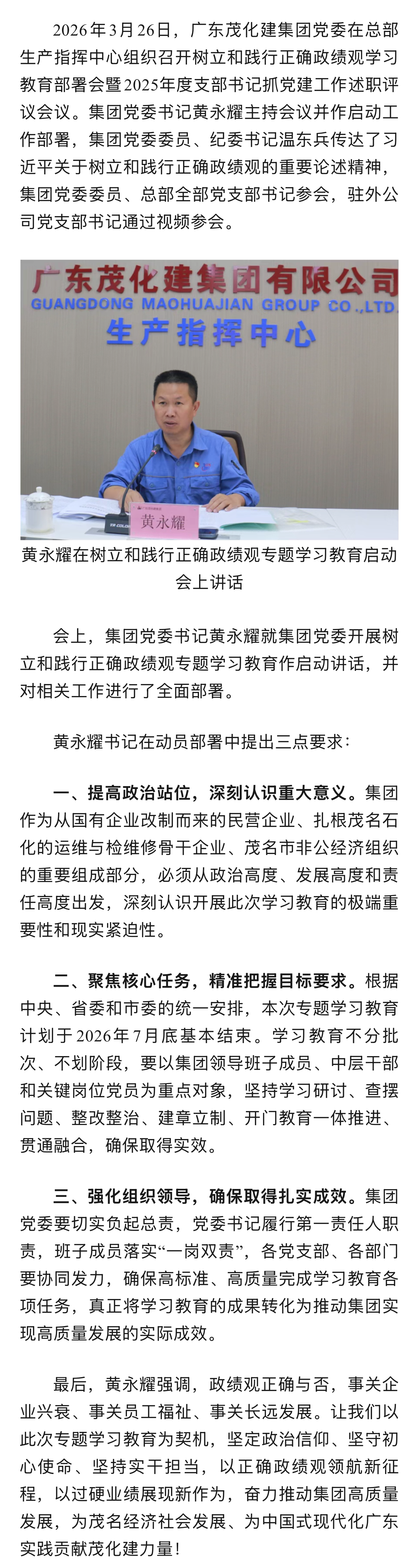廣東茂化建集團(tuán)黨委召開樹立和踐行正確政績觀學(xué)習(xí)教育工作部署會