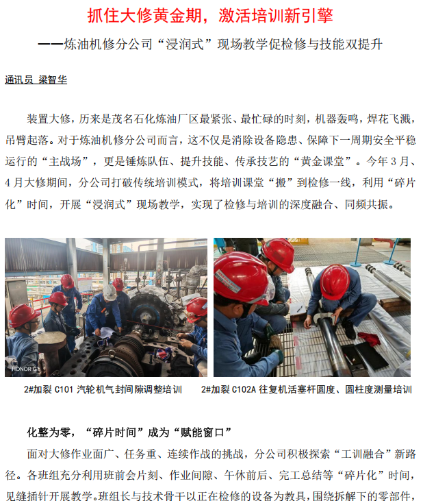 煉油機(jī)修分公司“浸潤(rùn)式”現(xiàn)場(chǎng)教學(xué)促檢修與技能雙提升