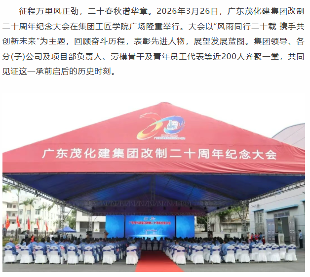 廣東茂化建集團(tuán)改制二十周年紀(jì)念大會圓滿舉行