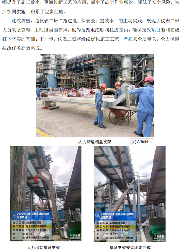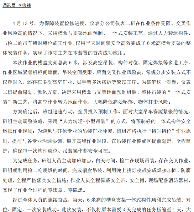 儀表分公司首次嘗試槽盒支架一體式安裝